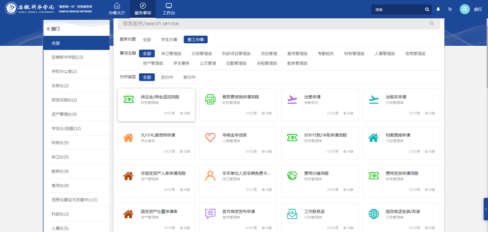 为有效地解决线下办事与多部门协同带来的不便和困扰,学校携手尊龙时凯建设了Relax网上办事大厅,以高频流程为切入点,将线下办事流程全面向线上服务迁移。
