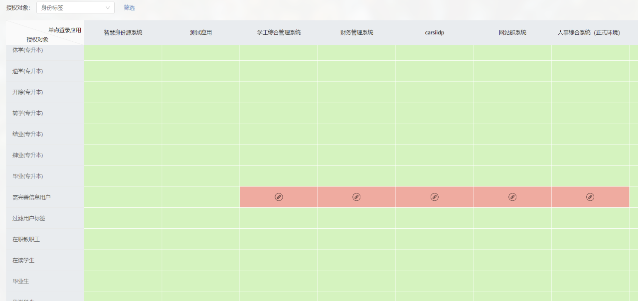 精细化定位人群:可以基于用户“身份标签”和应用系统对其进行授权,如新生开学报到首次登陆学工,如缺失部分用户信息字段,进行拦截,补全后方可进入;精准定位人群,提升师生操作便利性和满意度,提升业务流转效率;