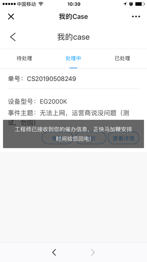 如果遇到紧急需求,客户可一键催单,我们的工程师会在正常班15分钟时间内与您联络,优先解决紧急需求。再也不用担心打不进电话啦~
