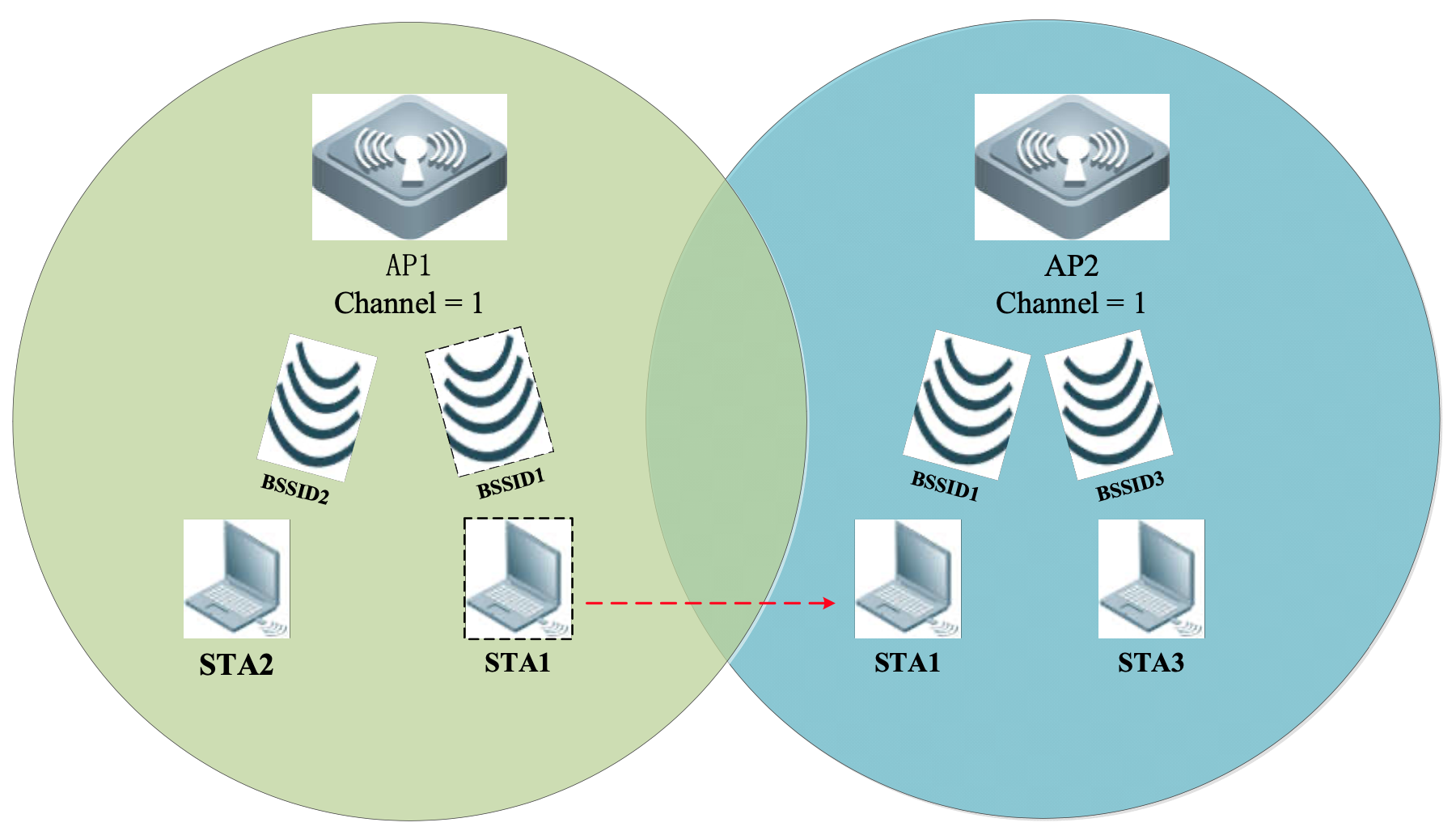 目前,WLAN 组网普遍使用的是“微蜂窝架构”,即一个场所由多台 AP(Access Point,无线 接入点)覆盖,为了降低AP之间的同频干扰,相邻AP一般使用不同信道进行错频部署。在这种组网方式中,终端从一台AP的覆盖范围移动到另一台AP的覆盖范围时,终端存在重关联,可能导致数据通信时延变大和丢包断流,同时如果信号很低但不主动发生漫游,也将导致数据通信时延变大和丢包断流。