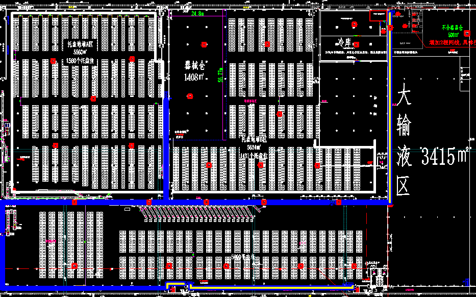 A 公司是一家区域性某类物品流通企业,2005年至今一直稳居该省该行业榜首。本次是在其新建的现代物流中心部署无线网络,该物流基地由全自动立体库区、拆零拣选流水线作业区、冷链产品存储作业区、第三方物流等配以WMS现代物流信息系统组成,是该省乃至国内单体面积最大、功能最齐全的现代物流基地之一。目前只建成了一期工程,建成的区域如图 5-1红框所示。
